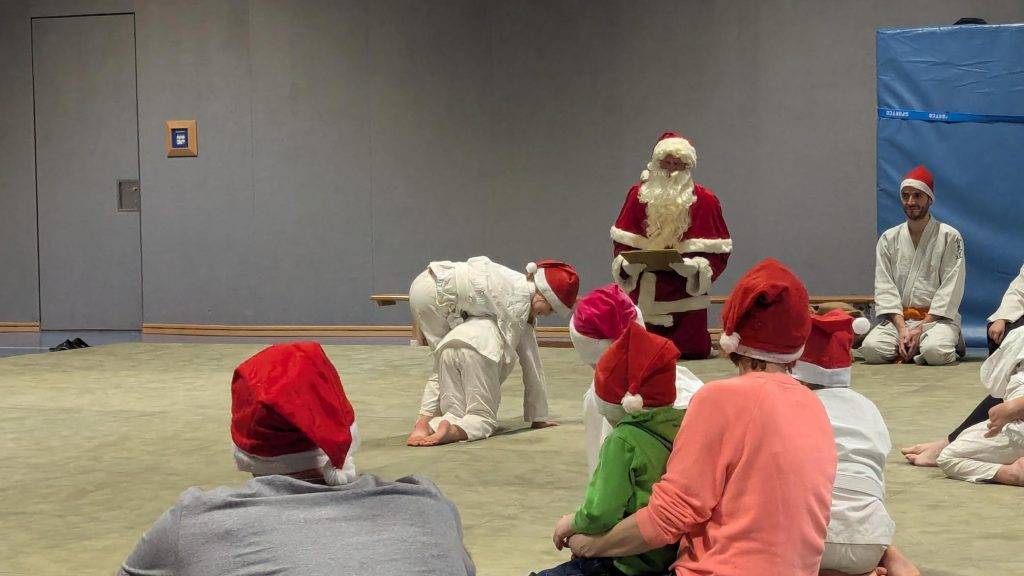 Im Dezember gab es bei der Aikido-Kindergruppe eine ganz besondere Trainingseinheit: Der Nikolaus ließ es sich nicht nehmen, die jungen Sportlerinnen und Sportler persönlich zu besuchen. Mit großer Freude und leuchtenden Augen begrüßten die Kinder den Überraschungsgast in der Halle.